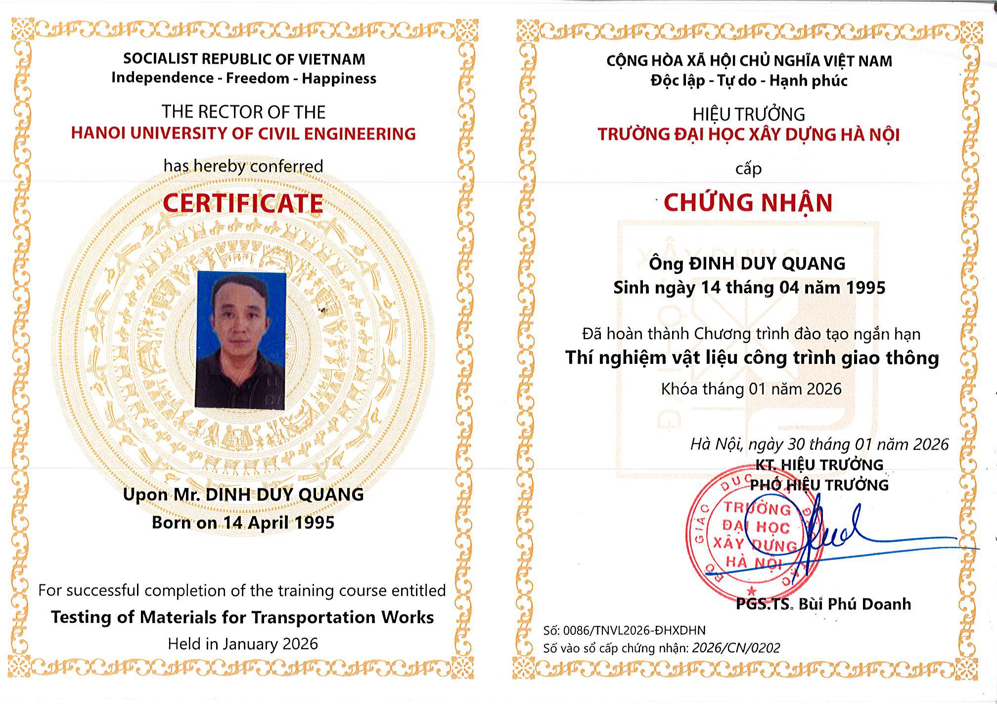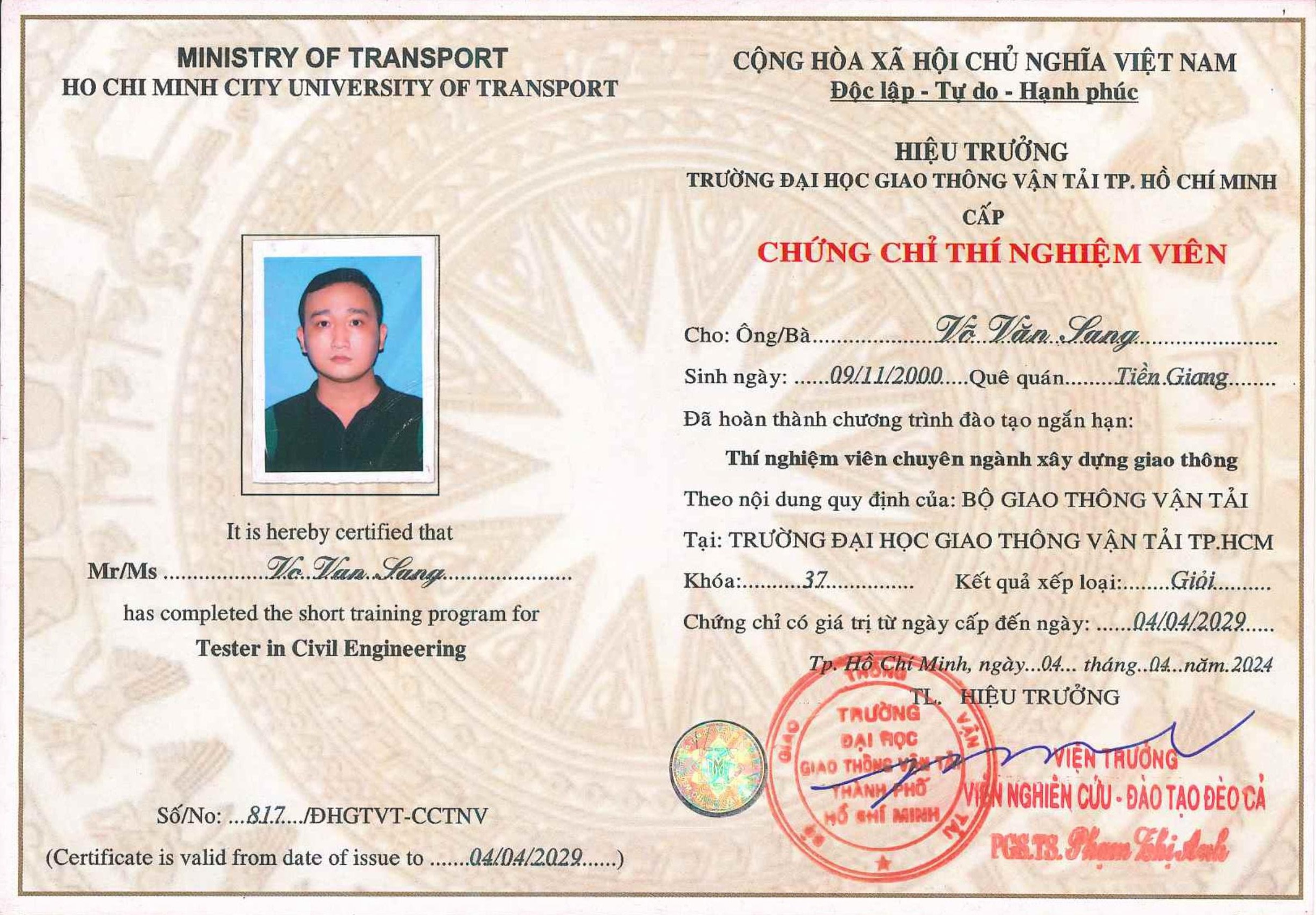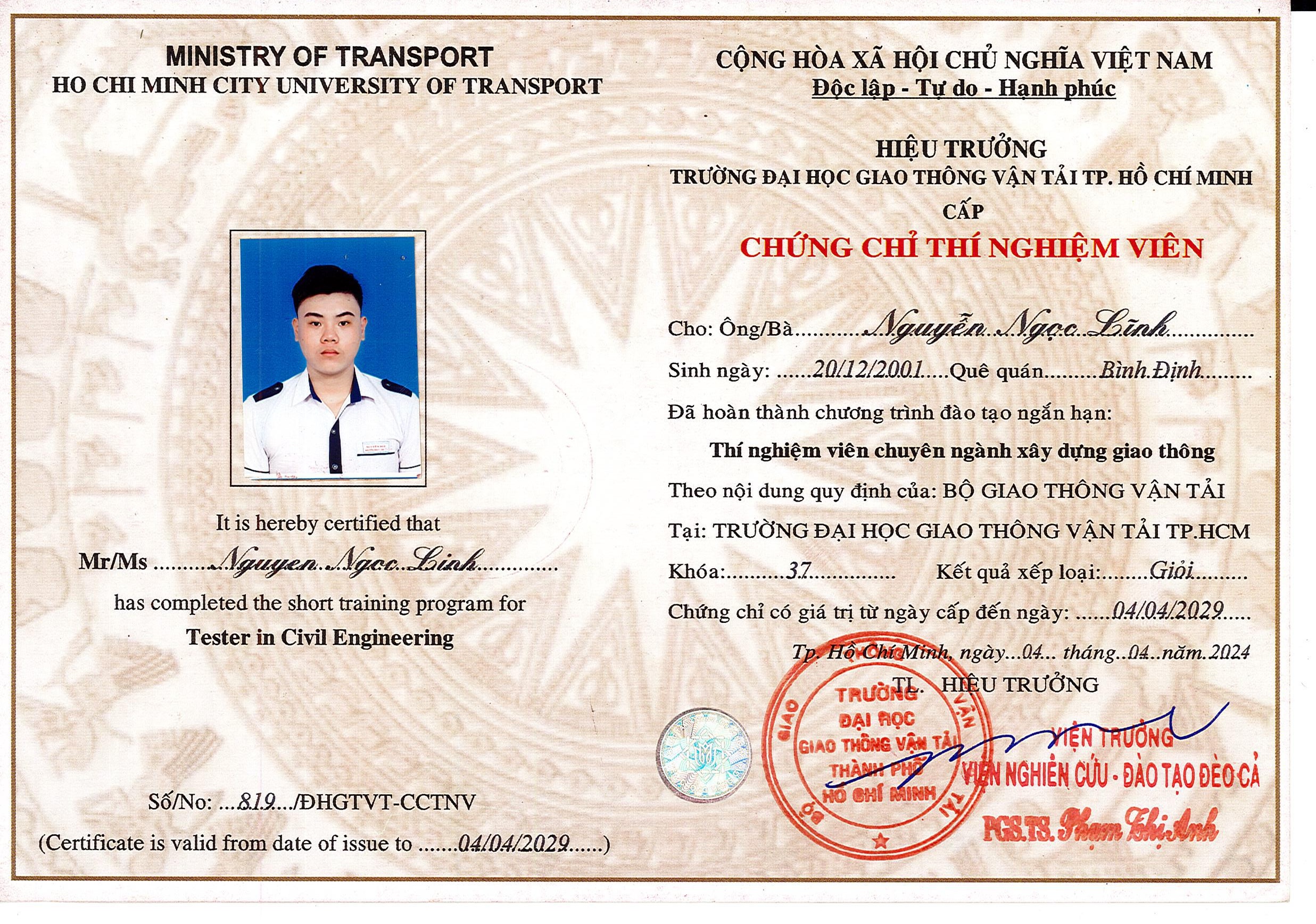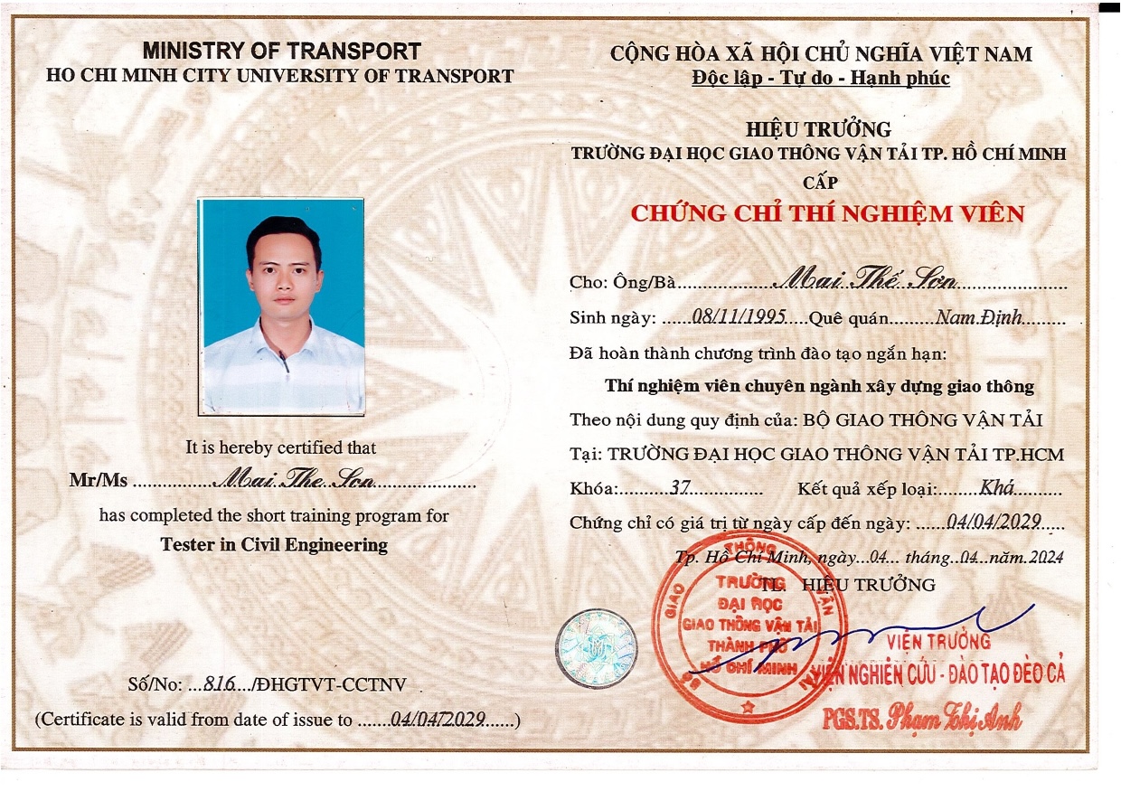 Bằng Cấp - Chứng Chỉ Thí Nghiệm Viên