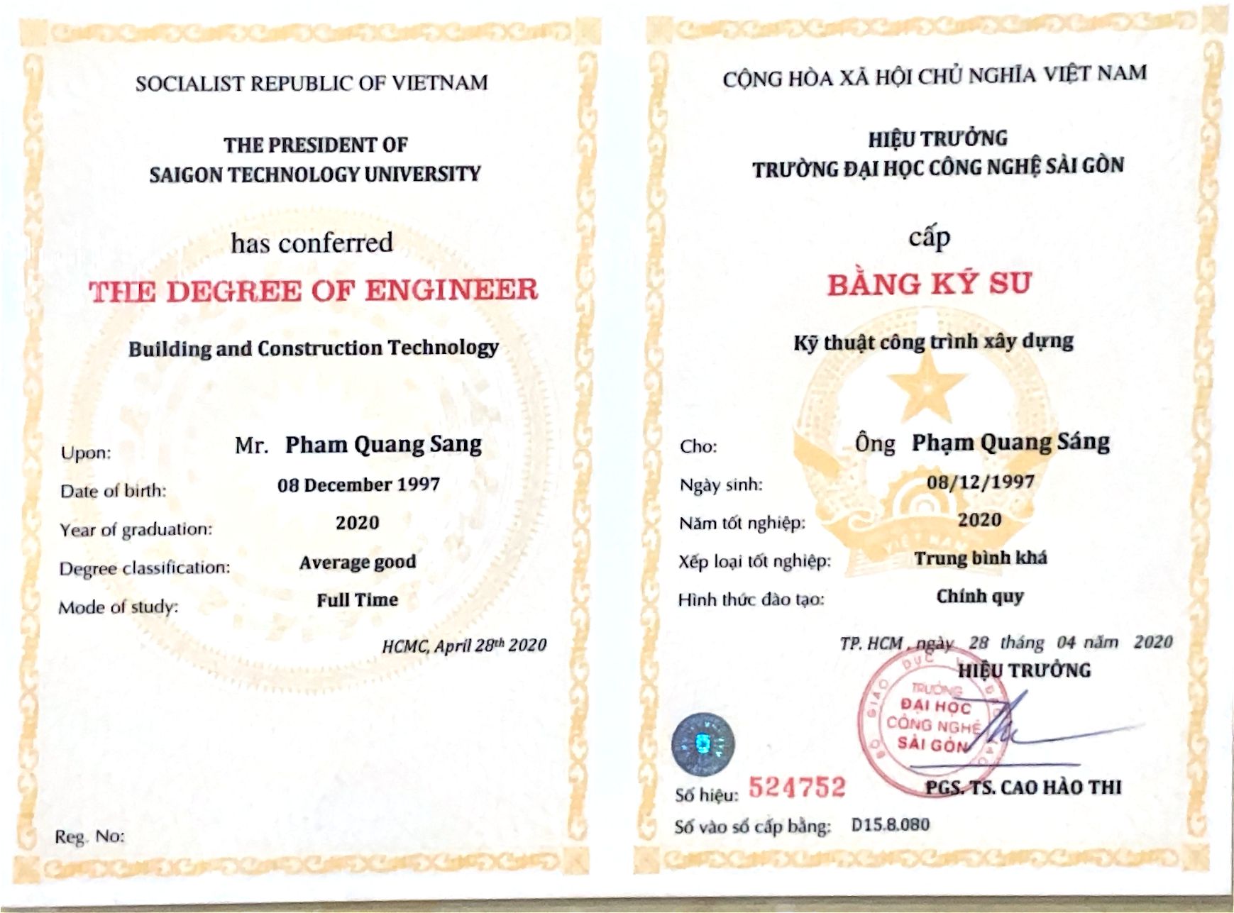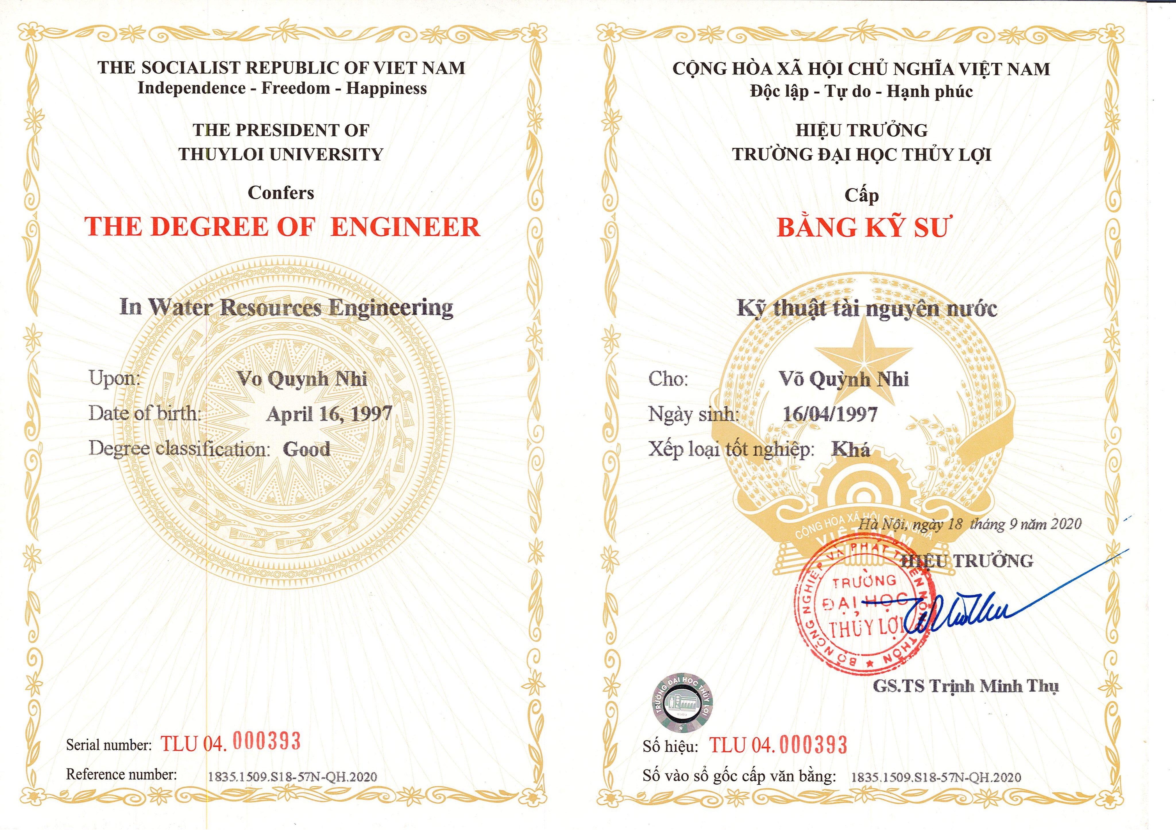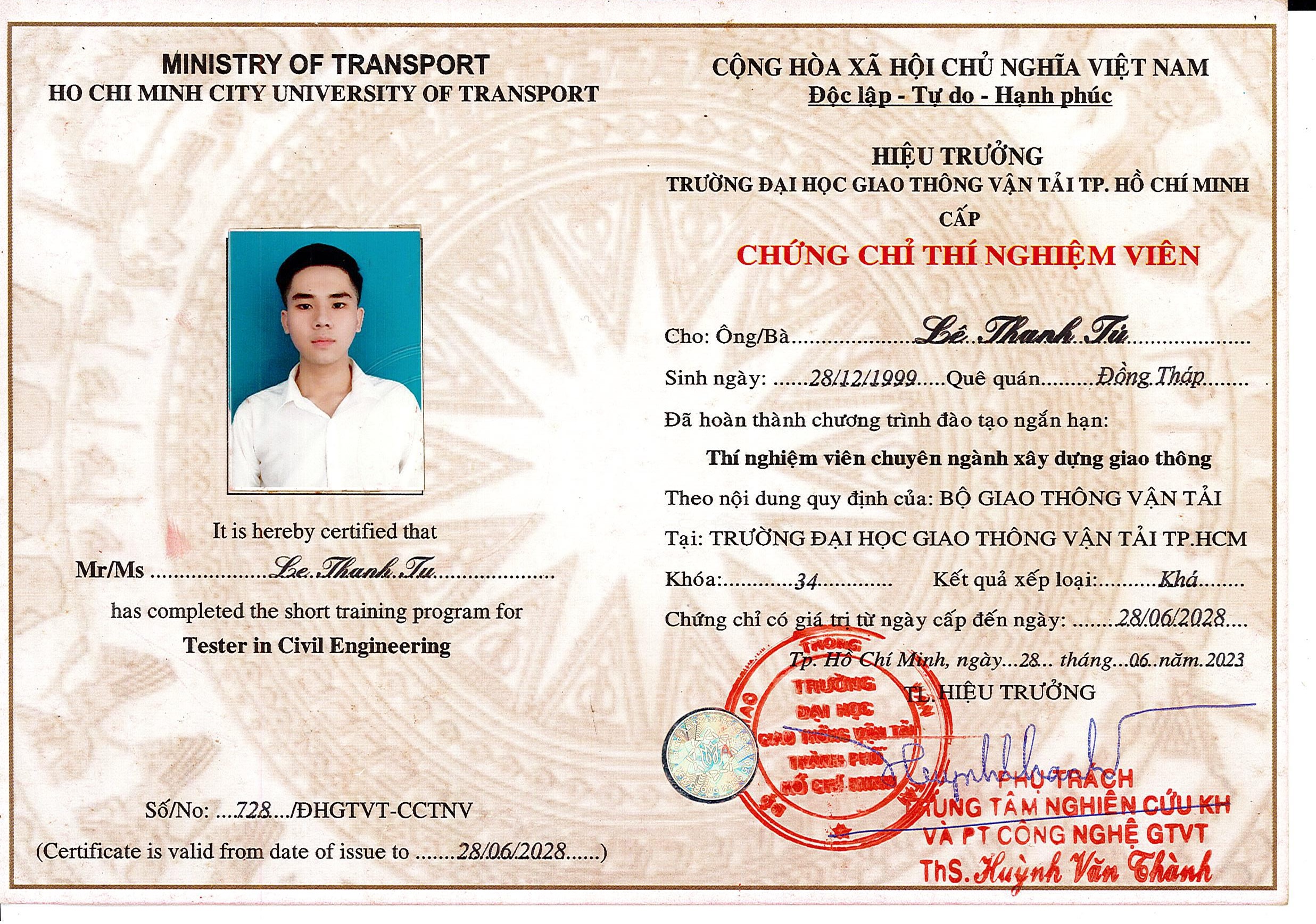 Bằng Cấp - Chứng Chỉ Thí Nghiệm Viên